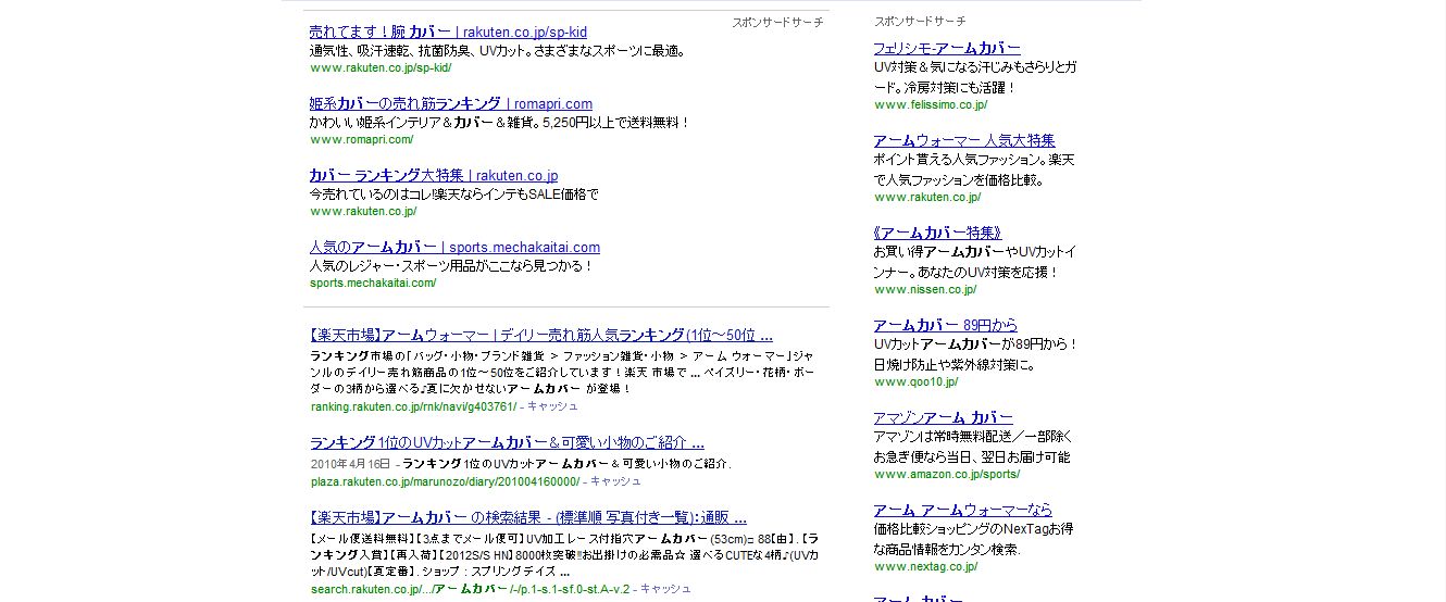 例えば、さっき紹介した「アームカバー ランキング」とか